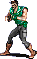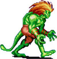 Jest jeszcze jeden przeciwnik wyglądający jak Blanka ze Street Fightera. Zapewne nie jest to przypadek, bo obie gry zrobił Capcom. Ten gość potrafi być uciążliwy. Skacze, atakując z powietrza. Rzyga kwasem, pęta nas wystrzeliwanym jak u kameleona językiem i pożera leżące na ziemi przedmioty. Po śmieci oddaje wszystko co zjadł.